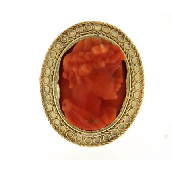 Anello in oro 18kt e cameo in corallo mediterraneo raffigurante profilo di giovane romano Peso complessivo : 7,6