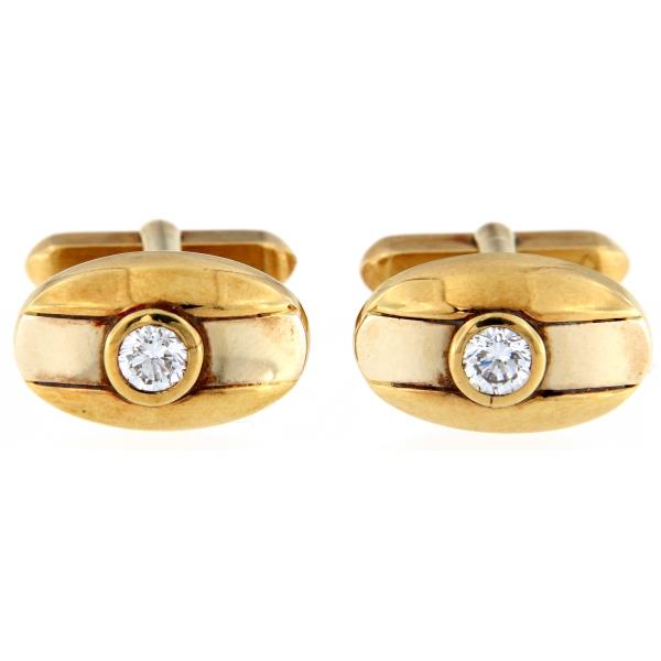 Gemelli in oro giallo e bianco 18 Kt con diamanti naturali taglio brillante per un peso complessivo di ct 0,44 circa. Peso gr 10,90. Epoca: anni '50